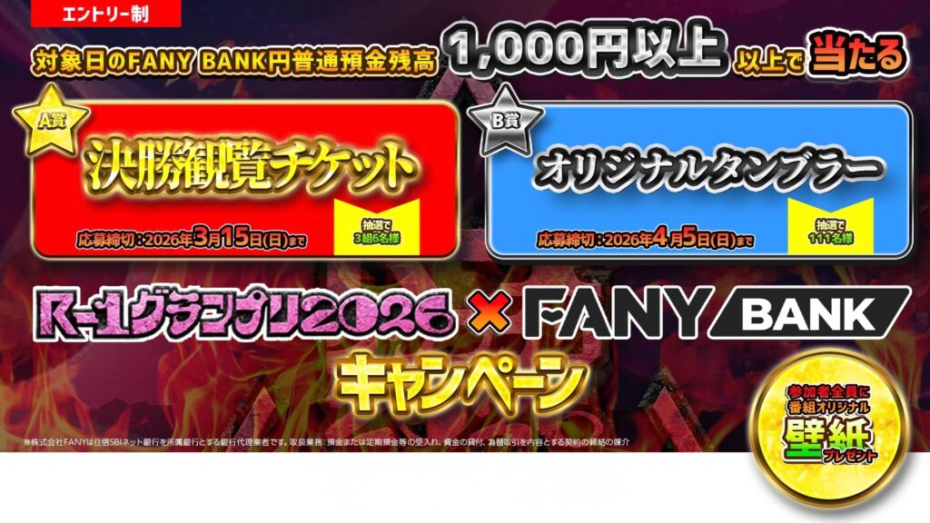 決勝観覧・オリジナルグッズが当たる!R-1 グランプリ 2026 FANY BANK キャンペーン